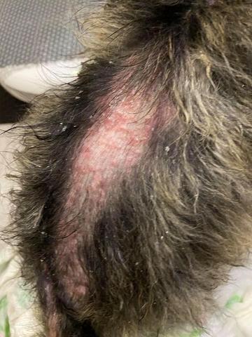 Her skin was quite red and still coming out. We asked the owner to begin applying every other day rather than daily. Sometimes, this is just necessary. We never want the dog to experience discomfort during treatment. It's okay to slow things down a bit, it's not okay to quit!