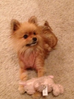 The first picture is when he was at his worst with Black Skin Disease (September 2011.) Winston had started losing hair around 2 years previously; during that time, he slept more and more during the day. His appetite began to wane; his social skills also waned. Although he still liked to go for walks, he just wasn't as active as a pomeranian normally is. We tried melatonin, as suggested by his vet, and medicine for his thyroid. Neither of those made any difference, and the disease continued to take its relentless toll on his hair and skin. During the harsh, bitter cold winter of 2011, we put sweaters and coats on him to protect him from the cold because he virtually had no hair on his back, stomach,and tail. We had all but given up on anything that would help him.On September 17, 2011, we received our first bottle of DERMagic Skin Rescue Lotion. We began the regimen immediately...with only a small bit of hope that it would really work. We saw the black skin gradually wash away with each bath we gave him.On October 29, 2011, I recorded in my journal that John and I began to see some of Sir Winston's hair returning. We were cautiously hopeful, and noted that he loved his application times and seemed more lively, energetic, and that his appetite had improved.